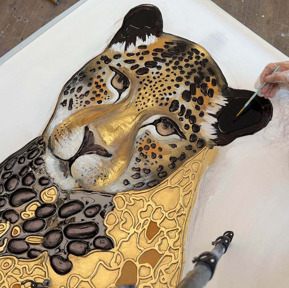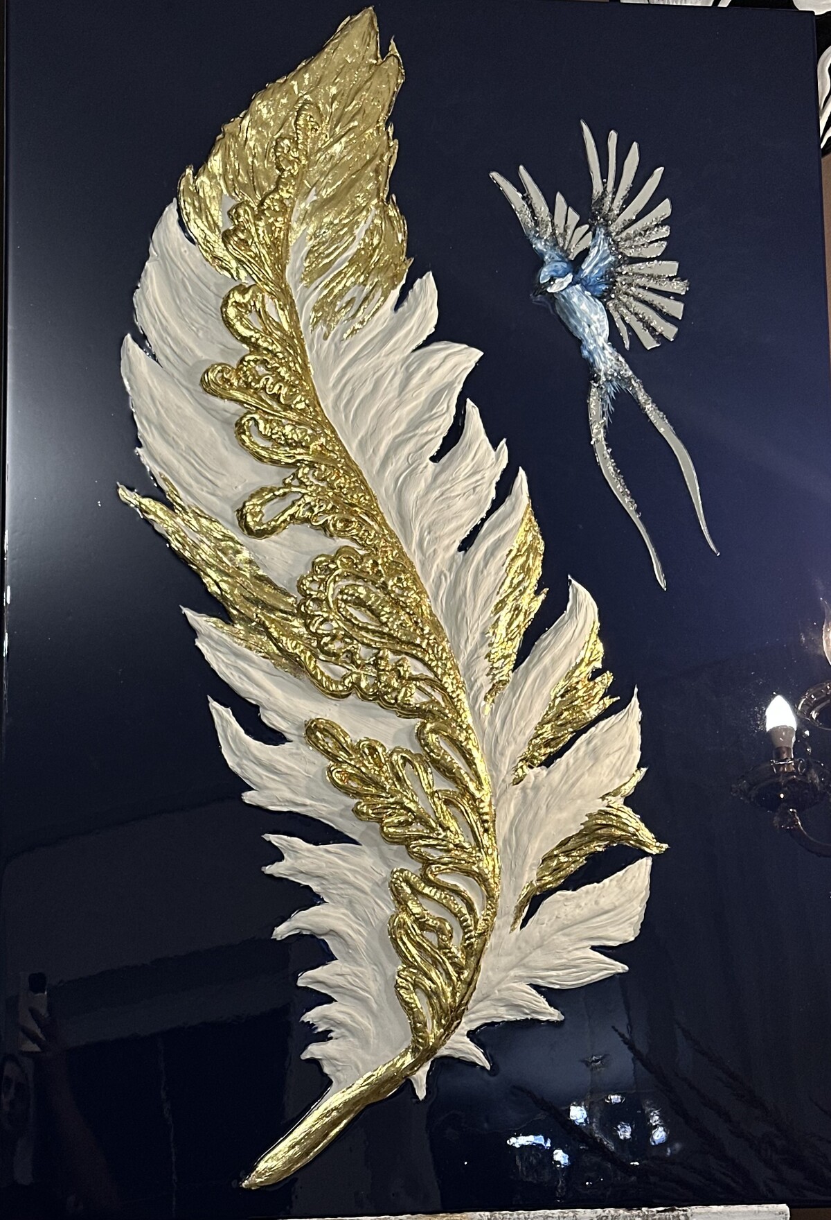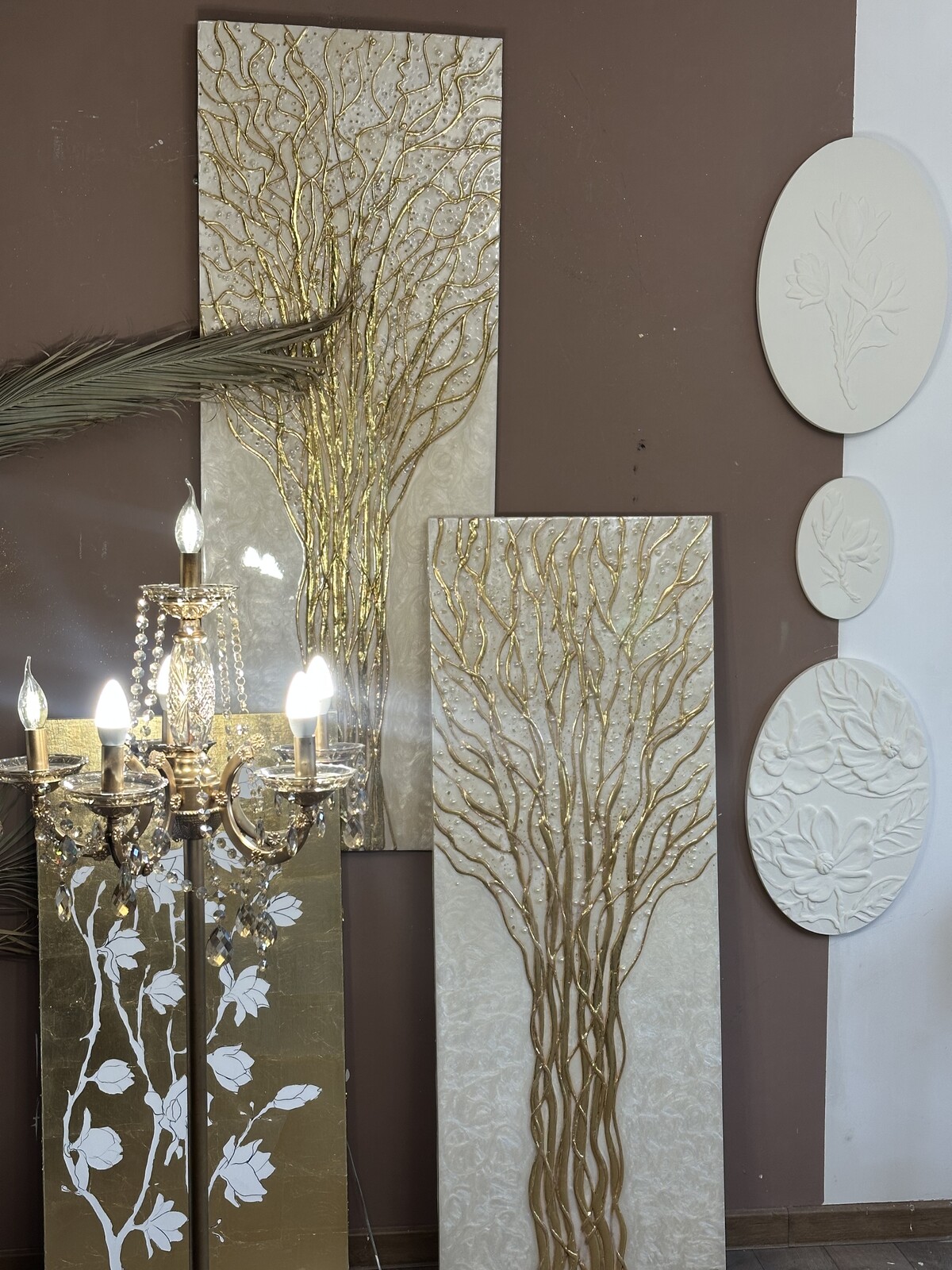 - Работать с различными стилями и техниками, включая сложные 3D картины, масло, акрил, смола, стеклянные элементы, поталь.